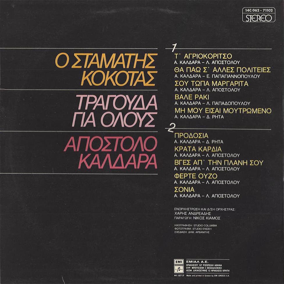 | Σταμάτης Κόκοτας - Ο Σταμάτης Κόκοτας Τραγούδα Για Όλους Απόστολο Καλδάρα |